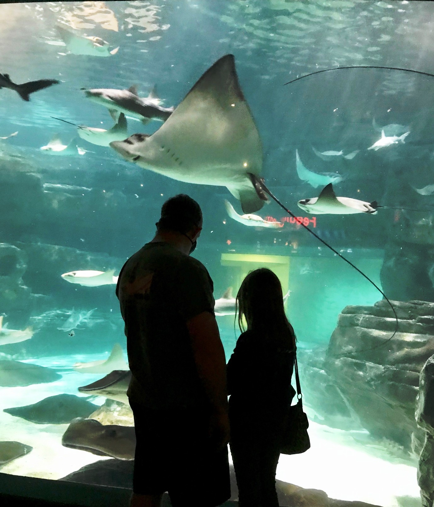 But the best part of my visit to the aquarium was seeing the fish and other marine creatures through the eyes of my grandchildren and the other children in the place as they admired the various fish and were entranced by the sharks swimming overhead. The visit was a highlight time for my youngest granddaughter who claimed manta rays and sea turtles as her favorite animals. She and her father watched the manta rays for a very long time while her older siblings waited patiently. She was thrilled, as I was, when the turtle came out of hiding and swam all around while we were moving through the shark tunnel.