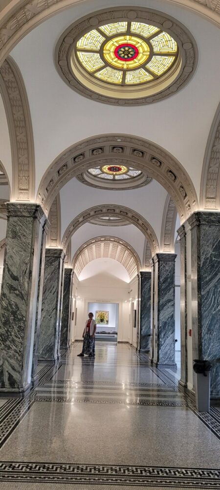 On top of seeing all the people there celebrating books, actually being in the beautiful building was a special treat. Marble steps, ornate stair railing, beautiful sky lights. Everywhere you looked you saw beauty and knew that there had been many people through the years who knew the importance of libraries to a city. Books were displayed in wonderful ways that made you feel you were in a bookstore on the first floor, but it was a store where all you needed to carry a book home to read was a library card. I have always loved libraries but have never been in one quite like this one.