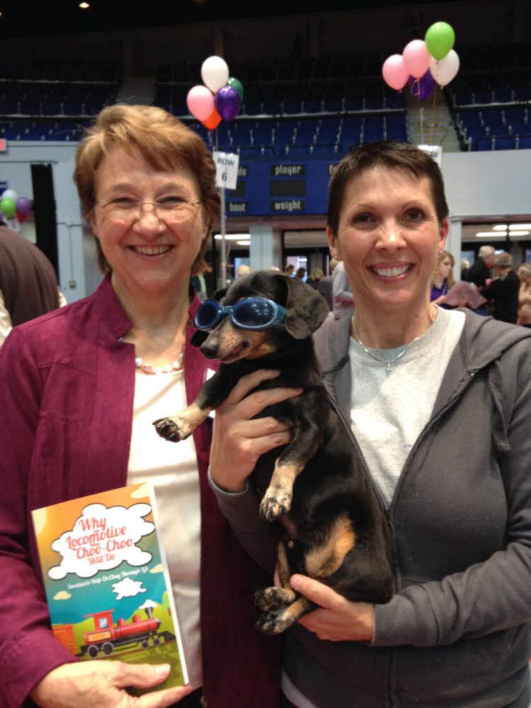 The number of authors invited increased every year as did the number of readers who attended. Eventually, the Fair was moved to the Kentucky State University and then to the Frankfort Convention Center where every year saw increased attendance. At the Book Fairs in Frankfort and then Lexington I have had my picture taken with many other authors and readers. One year I had the pleasure of posing with Woody, the dachshund, who with the help of his friend Leigh Anne Florence, had many stories and would sign his books with his paw print. You can probably see the ink on his paw in our picture. Talk about a popular signing table. Woody made friends from all over. Maybe it was those sunglasses.