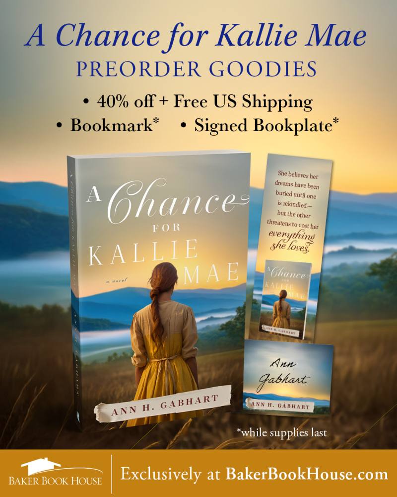Also, right now  you can get a great preorder deal on A Chance for Kallie Mae from Baker Book House. There will be some added goodies, a bookmark and a signed bookplate while supplies last.